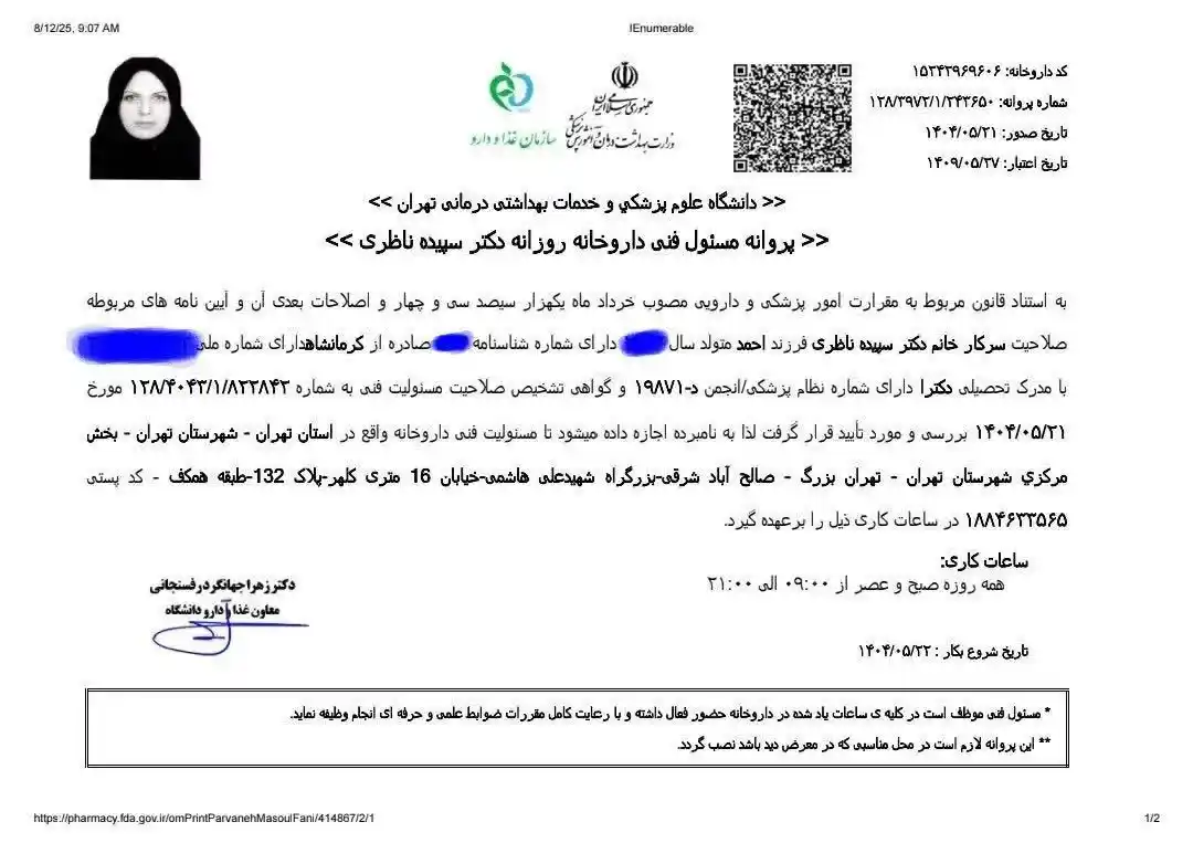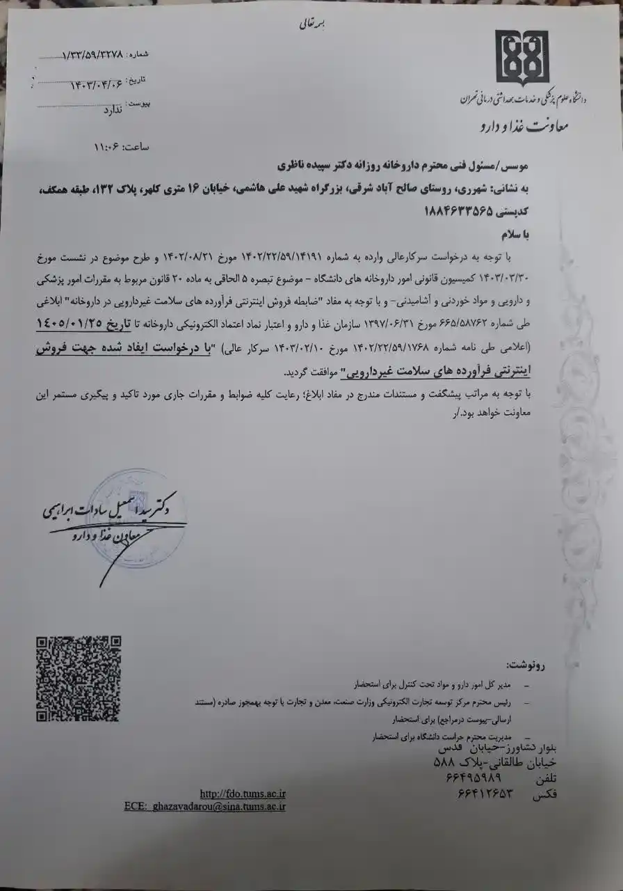 تلفن شکایات معاونت غذا و داروی دانشگاه علوم پزشکی تهران