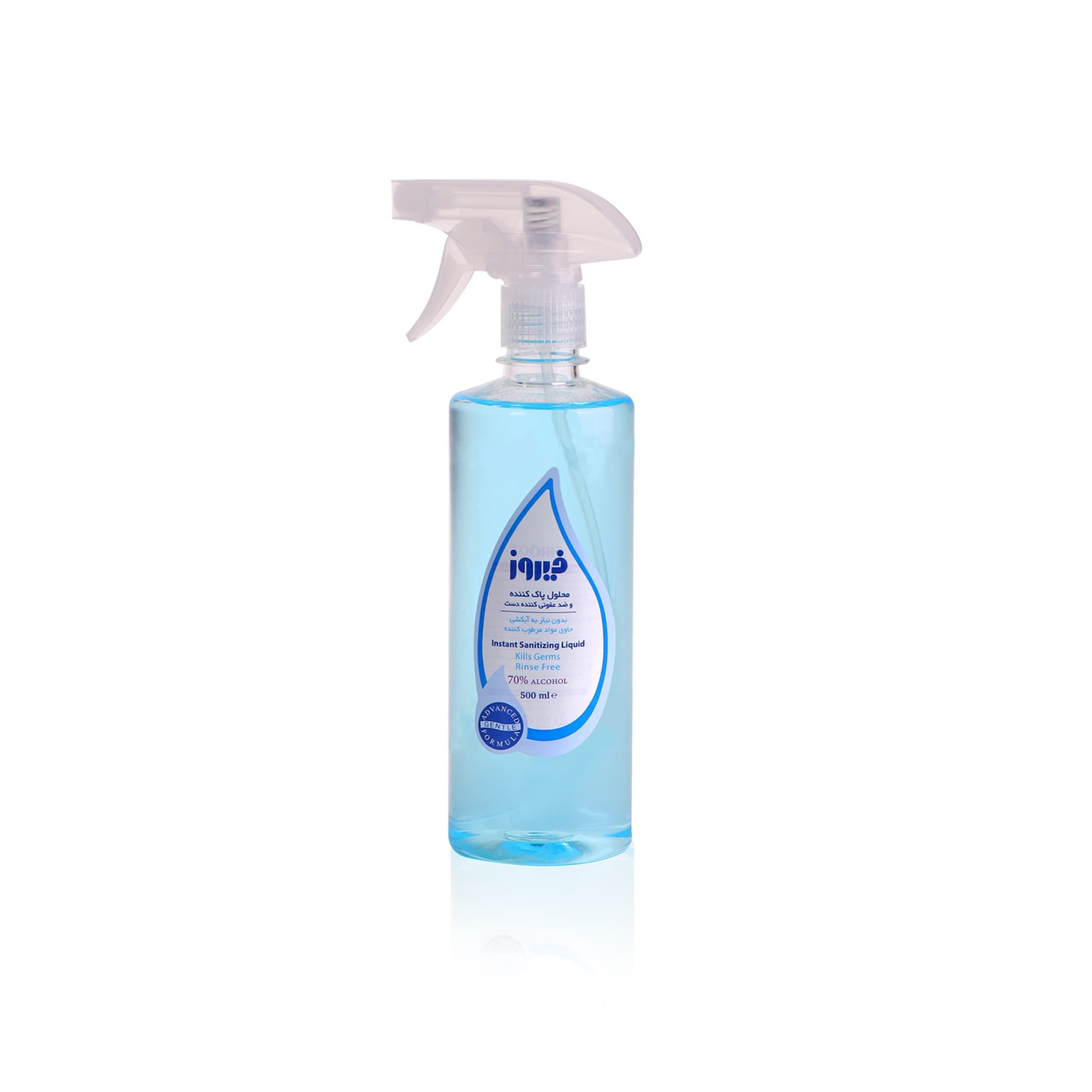 محلول پاک کننده و ضد عفونی کننده دست فیروز بدون نیاز به آبکشی و با جذب سریع در کمتر از چند ثانیه به راحتی در هر شرایطی قابل استفاده می باشد.