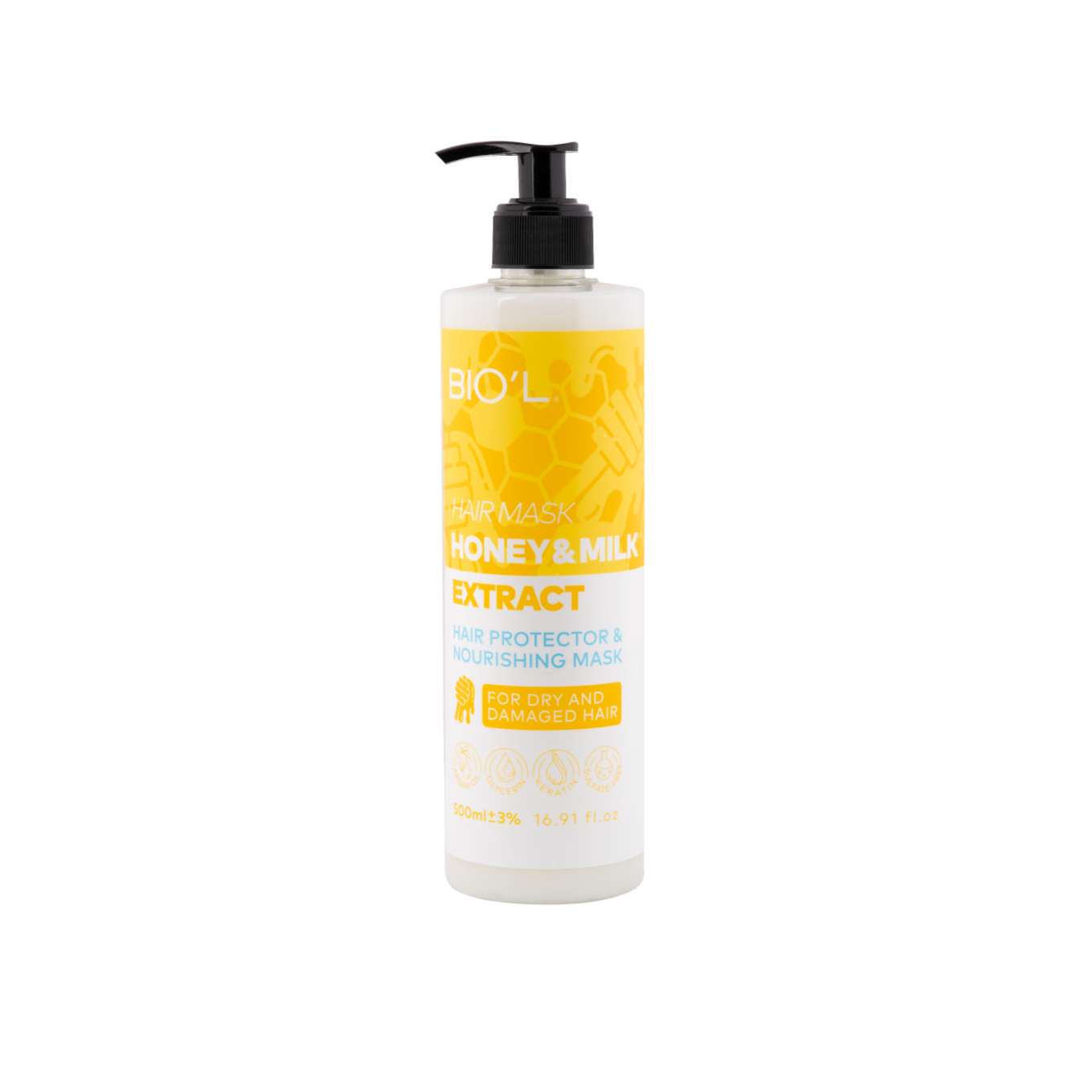 - پس از شستشوی کامل موها، ماسک موی شیر و عسل بیول را روی موی نمدار قرار دهید.