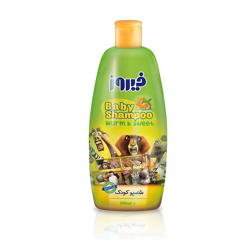 شامپو بـچه ماداگاسکار فیروز دارای جلد کارتونی است که همکاری کودک را هنگام حمام کردن بالا می‌برد. این شامپو با pH پوست سر کودک سازگار است
