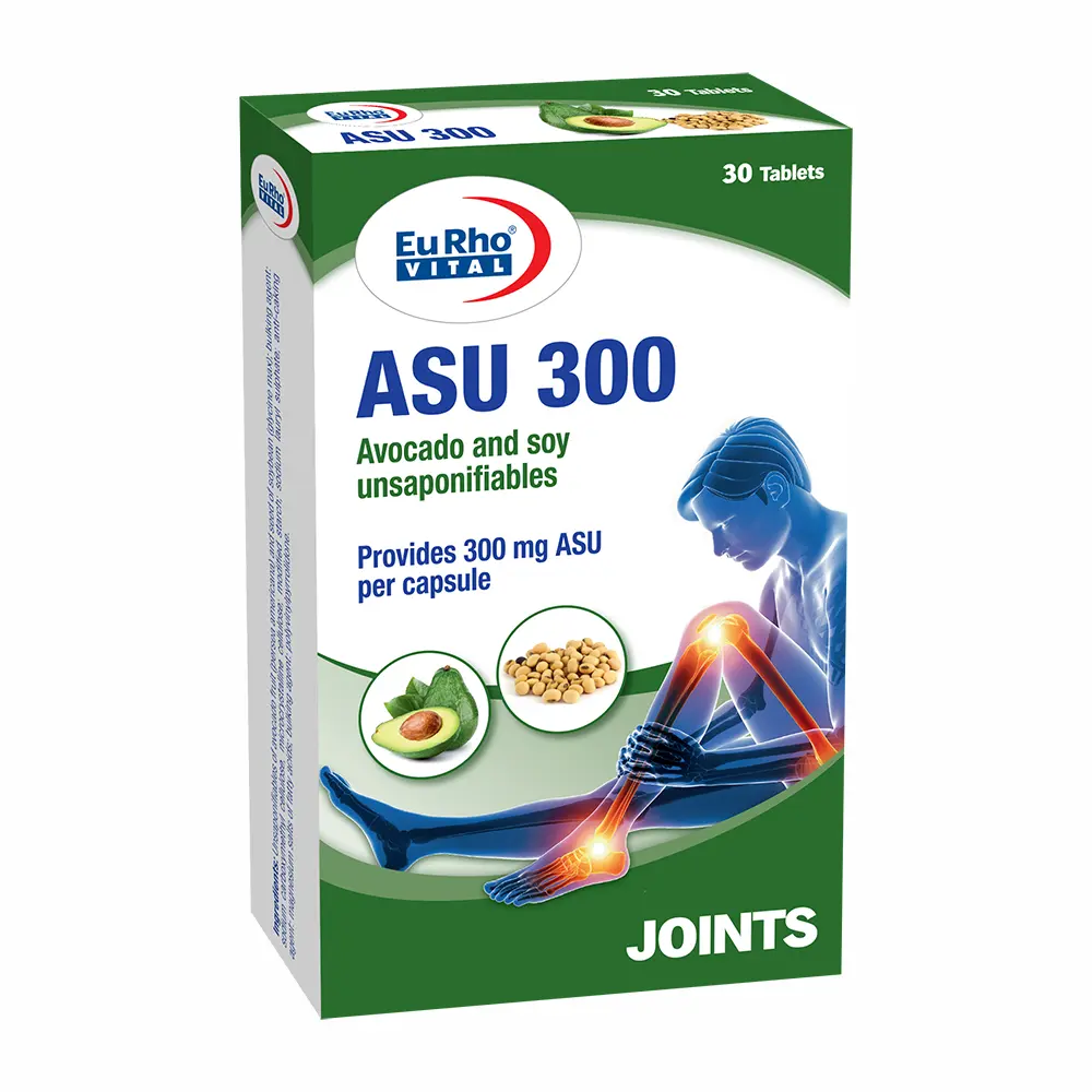 قرص آسو 300 یوروویتال Asu 300 مکملی تخصصی و طبیعی برای سلامت مفاصل است که حاوی عصاره غیرصابونیشوندهی آووکادو و سویا (Avocado Soybean Unsaponifiables) بوده و با خاصیت ضد التهابی خود در کاهش پیشرفت آرتروز و بهبود عملکرد مفاصل نقش موثری ایفا میکند.