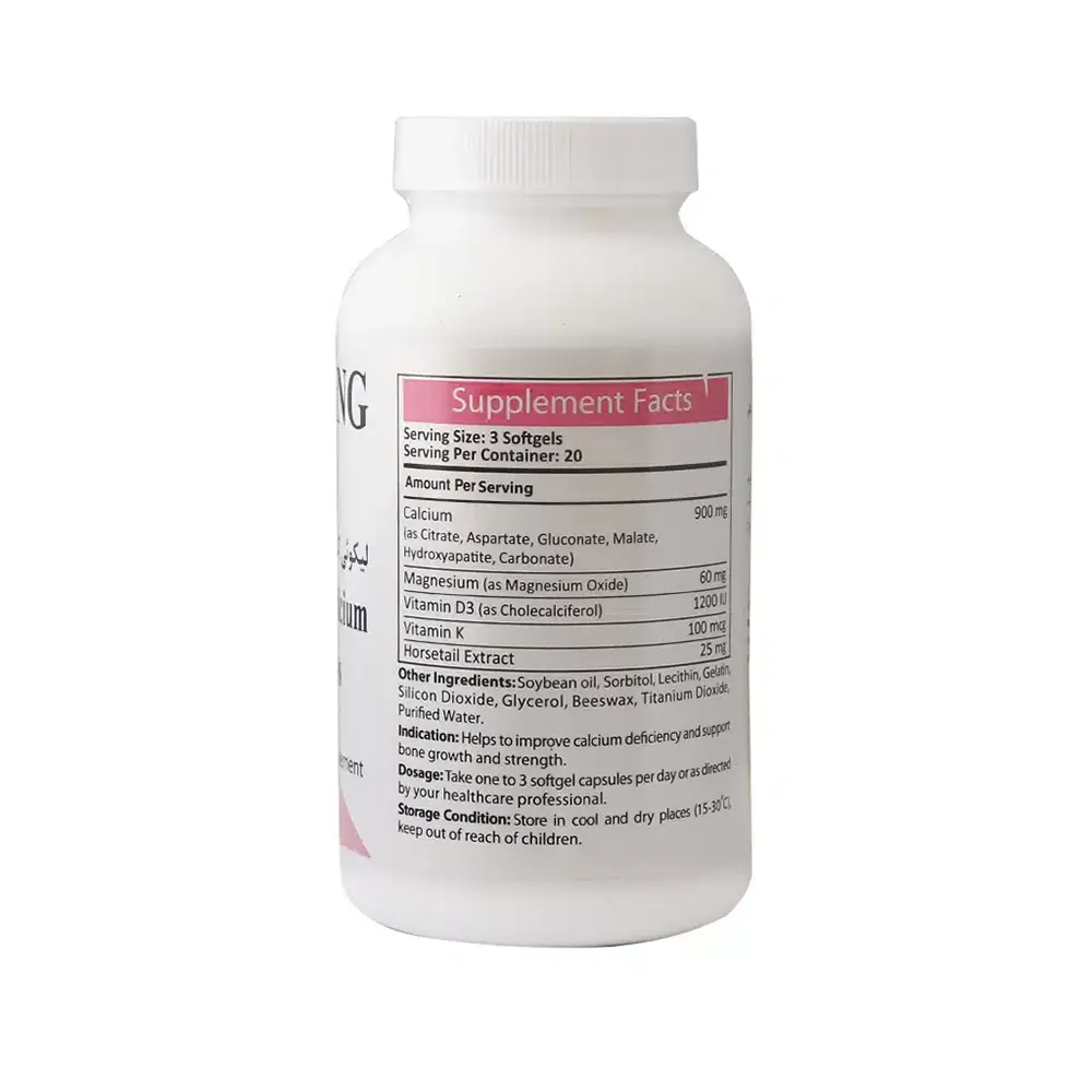 منیزیم موجود در این مکمل نقش کلیدی در تنظیم متابولیسم کلسیم دارد و از بروز گرفتگیهای عضلانی جلوگیری میکند. ویتامین D3 جذب رودهای کلسیم و فسفر را افزایش داده و ویتامین K2 با هدایت کلسیم به سمت استخوانها، مانع از رسوب آن در دیواره رگها میشود. عصاره گیاه دم اسب که سرشار از سیلیس است، با تحریک کلاژنسازی، استحکام استخوانها، پوست، مو و ناخن را تقویت میکند.