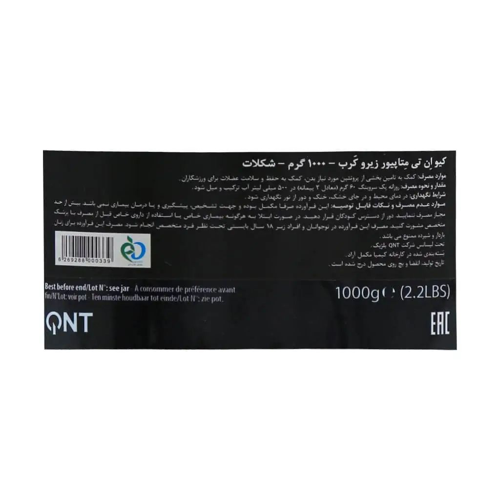 پودر پروتئین متاپیور زیرو کرب شکلاتی کیو ان تی 1000 گرم یکی از خالصترین پروتئینهای موجود در بازار جهانی است. پروتئین ۹۰ تا ۹۵ درصدی، بدون کربوهیدرات، بدون لاکتوز، طعم عالی و جذب بسیار سریع، این محصول را به گزینهای عالی برای هر ورزشکاری تبدیل کرده است. اگر هدف شما عضلهسازی خالص، جلوگیری از تحلیل عضلانی، افزایش قدرت و ریکاوری بهتر بدون دریافت کالری اضافی است، این محصول قطعاً بهترین انتخاب شما خواهد بود.