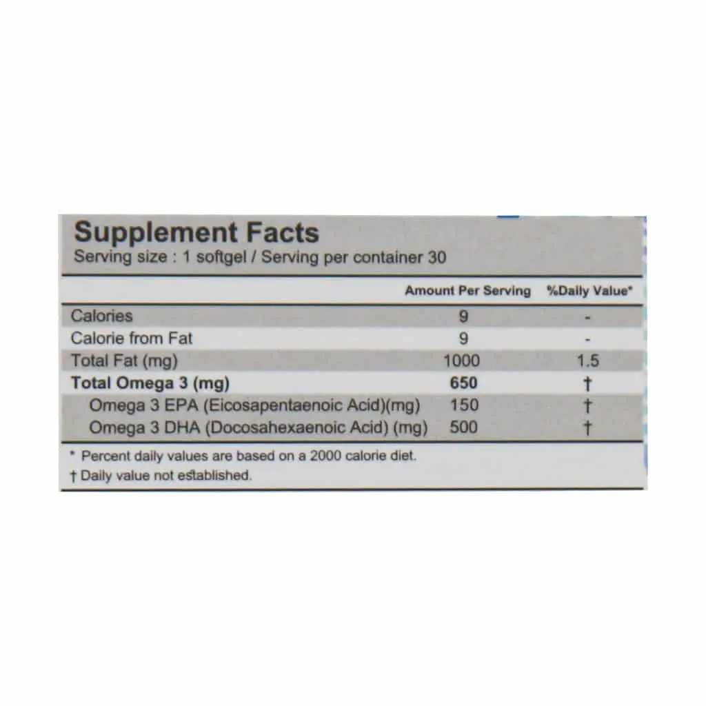 محصول سافت ژل امگا 3 DHA آکواتیک بالا بلیستر 30 عددی کارن از مرغوبترین منابع روغن ماهی تهیه شده است و تقریباً عاری از هرگونه فلزات سنگین و آلایندههای شیمیایی میباشد. هر سافت ژل 1000 میلیگرمی این مکمل حاوی 150 میلیگرم EPA و 500 میلیگرم DHA است که نسبت بالای DHA در آن، انتخابی ایدهآل برای سلامت مغز و بینایی بهویژه در زنان باردار، شیرده و کودکان فراهم کرده است.